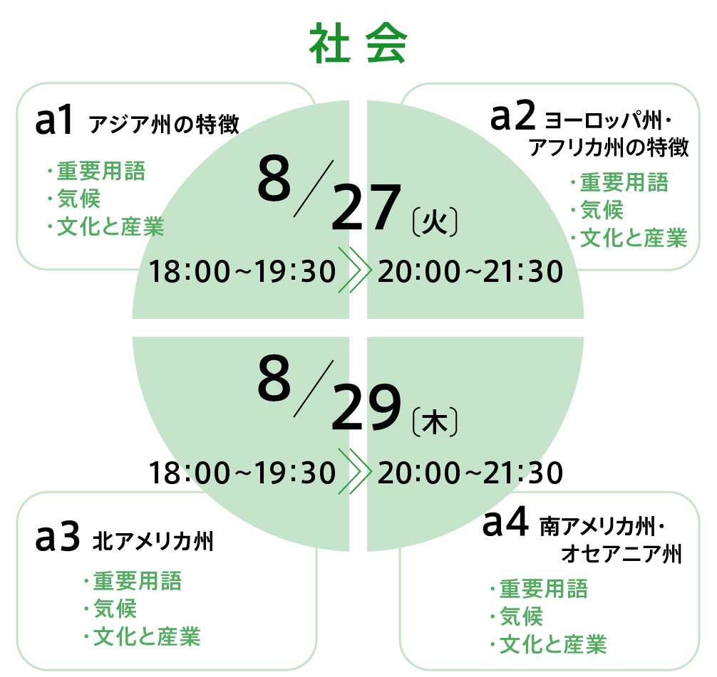 5教科の1・2年生の学習内容を4回に分けて復習します。